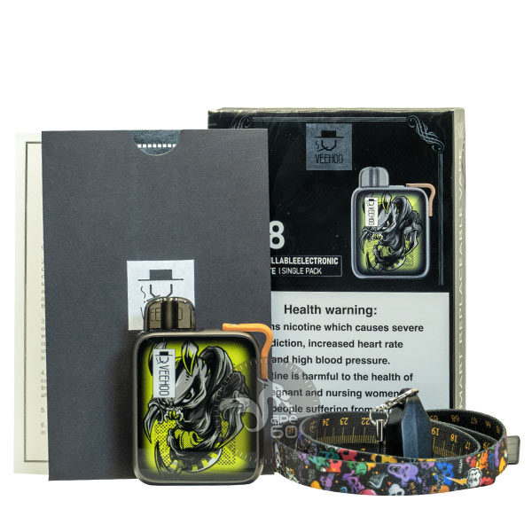از جدیدترین محصولات تولید شده توسط کمپانی VEEHOO است که در عین قدرتمند بودن دارای ظاهری زیبا و ویژگیهای جذابی میباشد. این پاد سیستم دارای منبع تغذیه داخلی 650 میلیآمپری است و در ساخت بدنه آن از آلیاژ روی استفاده شده تا بافت زیبایی داشته باشد. طراحی استیکرهای خاص با رنگ های بسیار جذاب هم زیبایی بدنه این پاد را چندبرابر کرده است. حداکثر توان خروجی این دستگاه 18 وات، دارای مخزنی با ظرفیت 2.5 میلیلیتر و از چراغ LED جهتنمایش میزان شارژ باتری در آن استفاده شده است. وزن پاد تی 8 تنها 92.3 گرم است و حمل آن بسیار آسان است، هم چنین در جعبه دستگاه بند گردنی ویژهای تعبیه شده که دوکاره است. در واقع هم بند گردنی دستگاه است و هم کابل شارژ دستگاه! علاوه بر این یک سمت بند دارای بسیار خلاقانه زیبا و متناسب با طرح بدنه پادسیستم و طرف دیگر آن به شکل سانتیمتر طراحی شده است تا آن را فراتر از یکبند ساده گردنی، کاربردی کند. باتری این دستگاه تقریبا برای یک روز کامل شارژ نگه میدارد و طی تقریبا 40 دقیقه فول شارژ میشود.